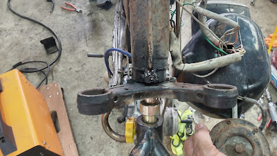 あっ、フロントフォーク詰めてるのでエンジンの前傾度も変わってました。三又も変わってるしね。